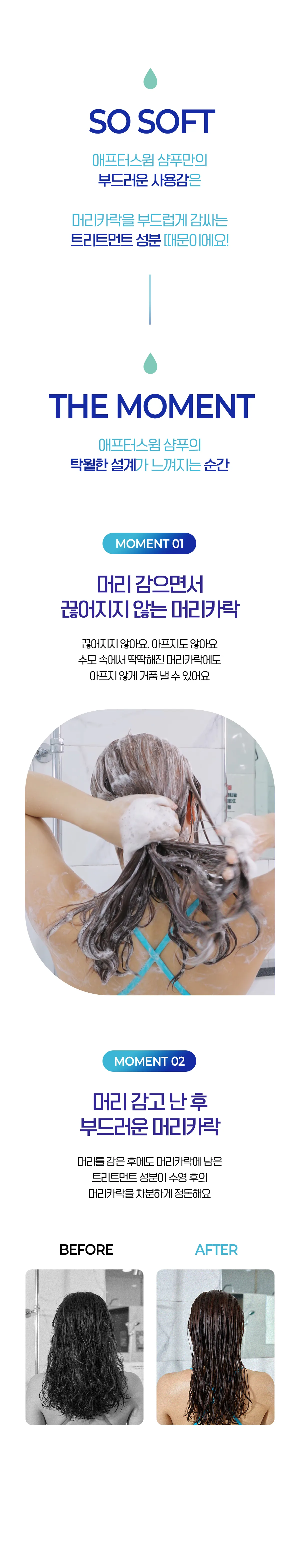 애프터스윔에서는 수영 후 머릿결 손상, 씻은 후에도 남아있는 수영장 냄새에서 ‘건강하지 않음’을 느꼈습니다.