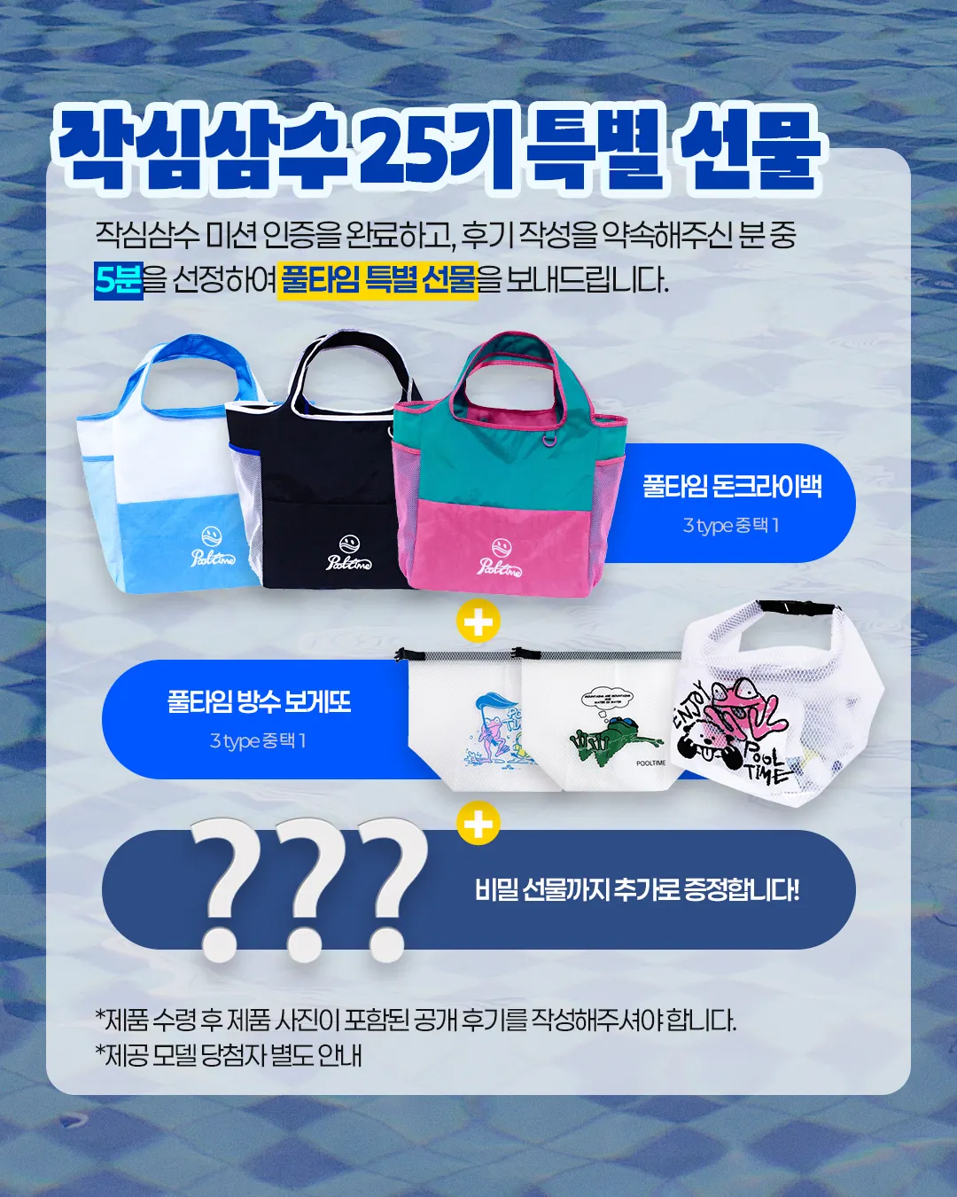 작심삼수 인증을 완료하고, 후기 작성을 약속해주신 분 중 5분을 추첨하여 풀타임 돈크라이백 + 보게또 + 비밀 선물 세트를 보내드립니다.