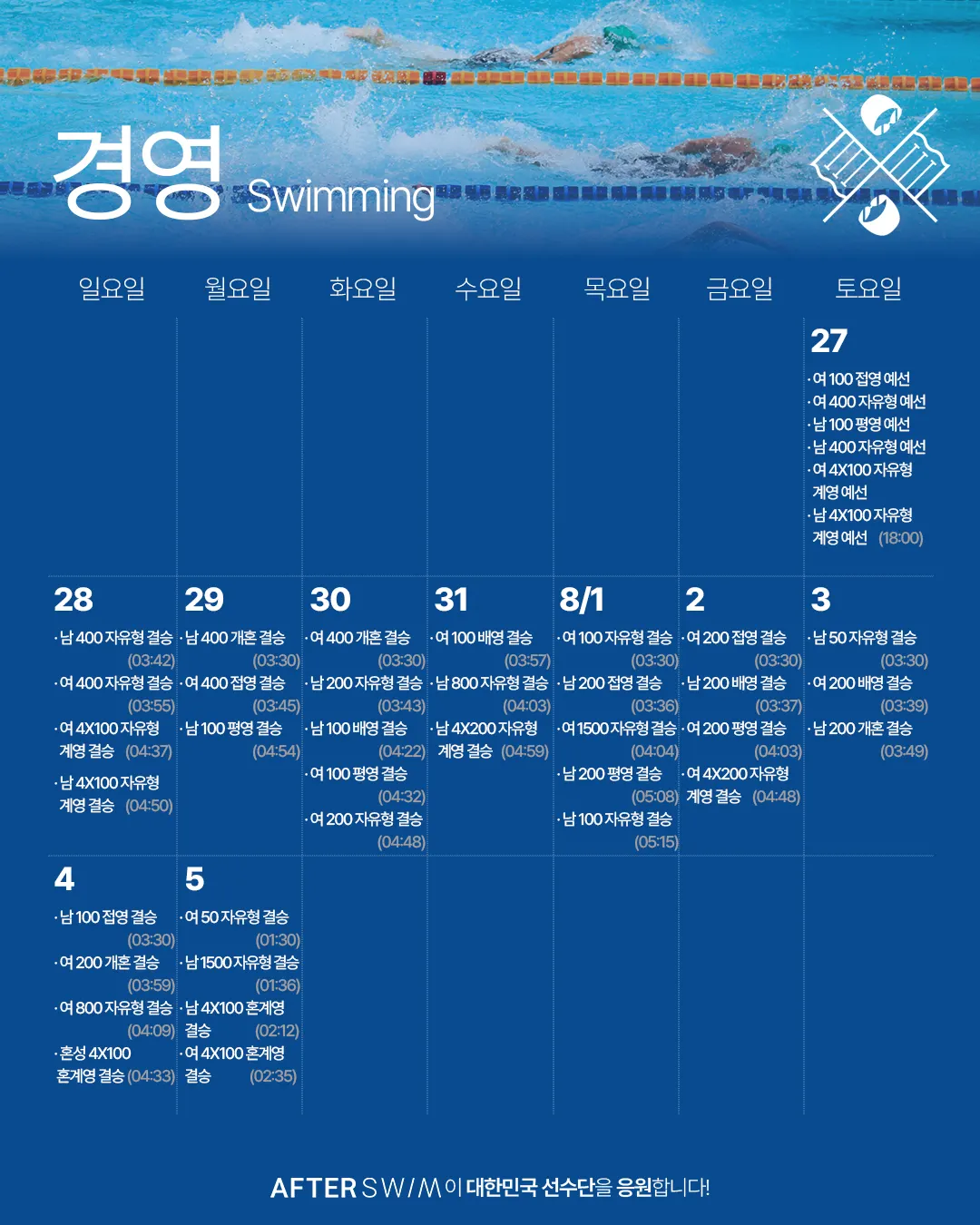 애프터스윔이 대한민국 선수단을 응원합니다!