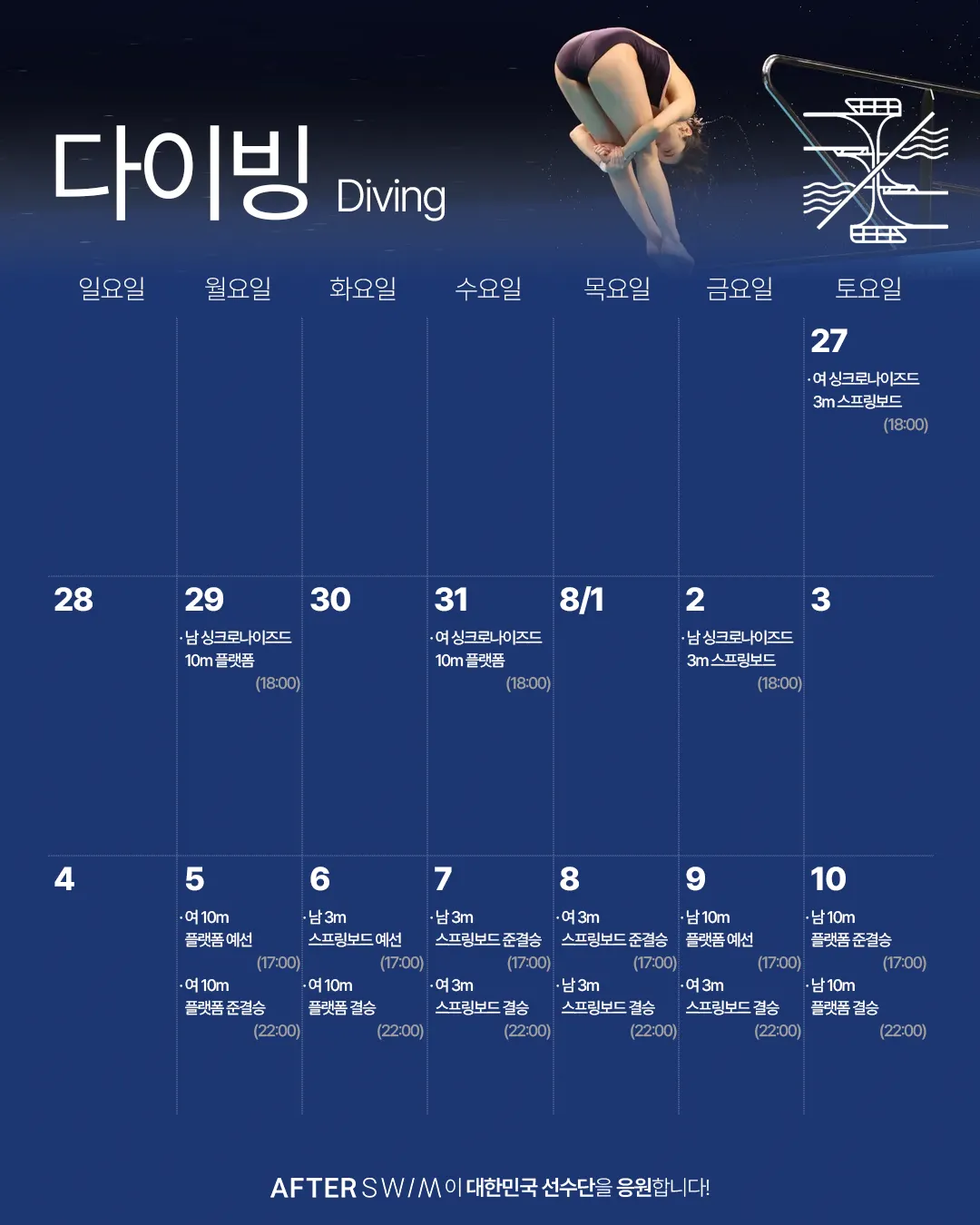파리 2024 올림픽 경영, 다이빙, 아티스틱스위밍 종목 경기 일정입니다.