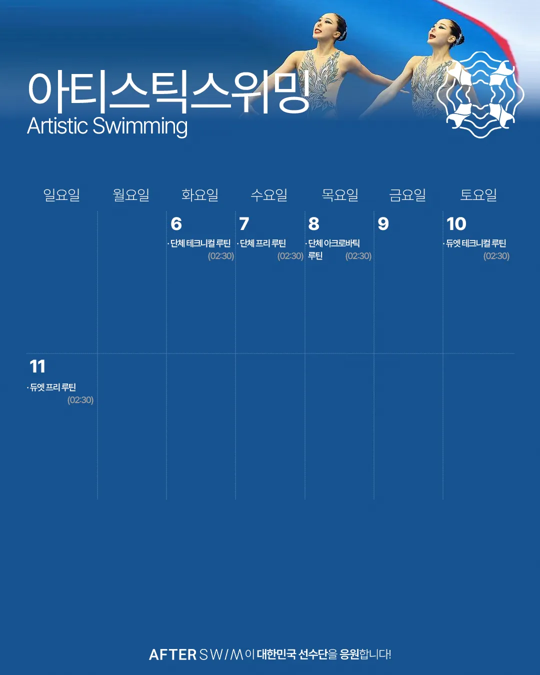 파리 2024 아티스틱스위밍 : 한국 선수단 (왼쪽 삼각형을 클릭하세요)